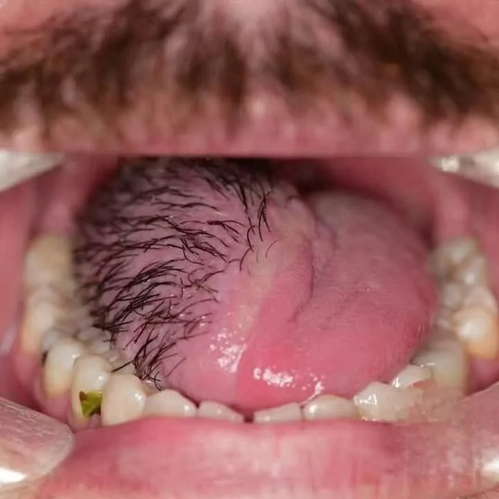 This is hair growing from a skin graft used to reconstruct a tongue damaged [devastated] by cancer.